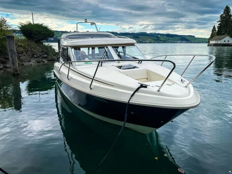 Power comes from a robust Mercruiser 5.0 petrol engine with 380 operating hours, delivering dependable and spirited performance. Extras such as a bow thruster, anchor windlass, heating and defroster ensure maximum safety and comfort in every season. A refrigerator rounds off the equipment and makes even longer excursions a pleasure.