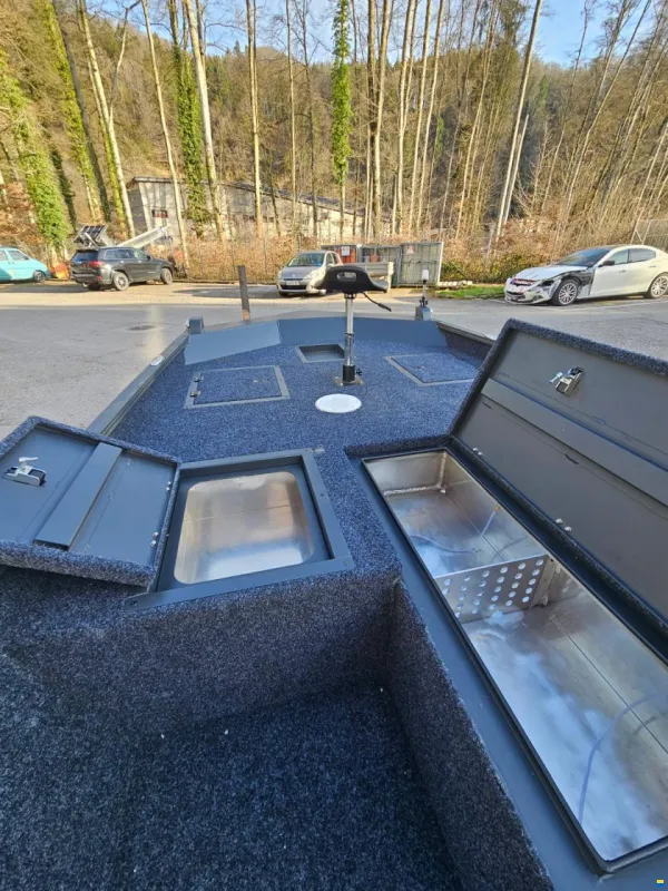 - Équipement : Vivier avec pompe, 8 coffres de rangement, console sport, moquette marine.