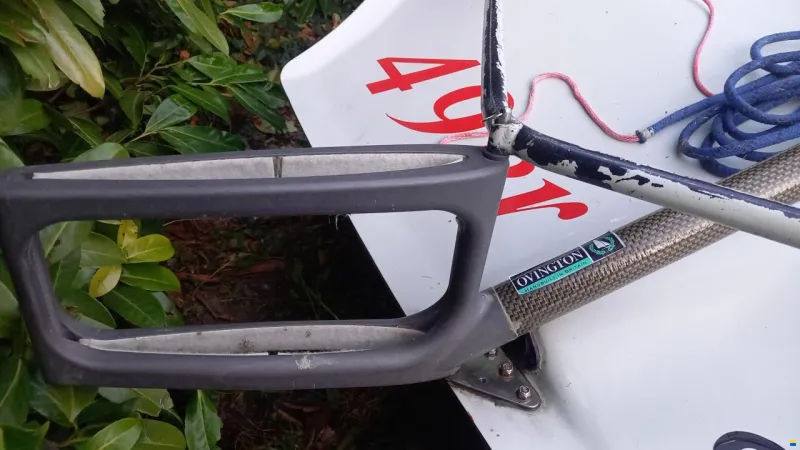 Tiller, rudder blade, and centerboard are like new. Additional unused gennaker boom